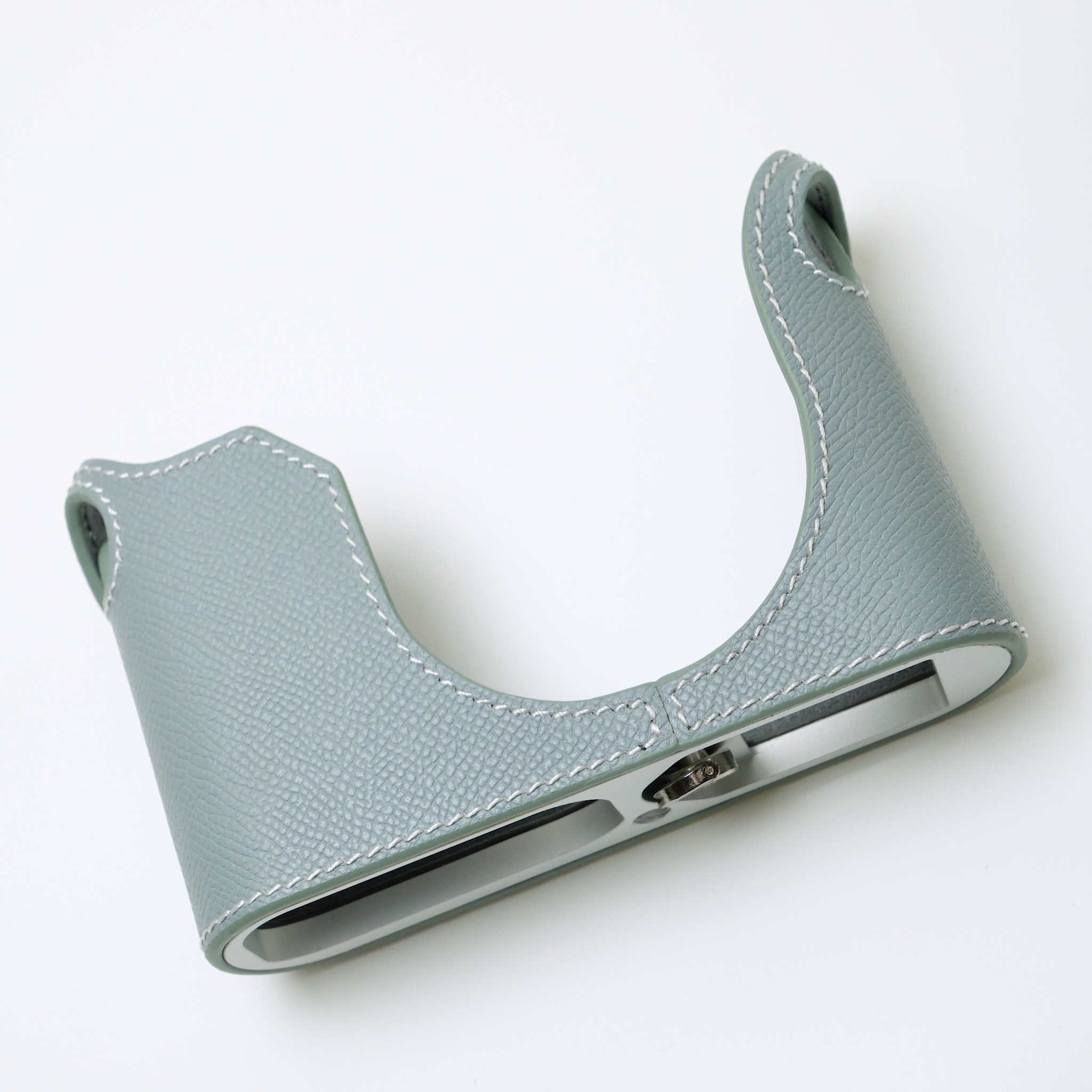 ライカ Q2 専用 本革 ボディケースの拡大画像、優しい色合いのライトブルー。 | Mr.Stone