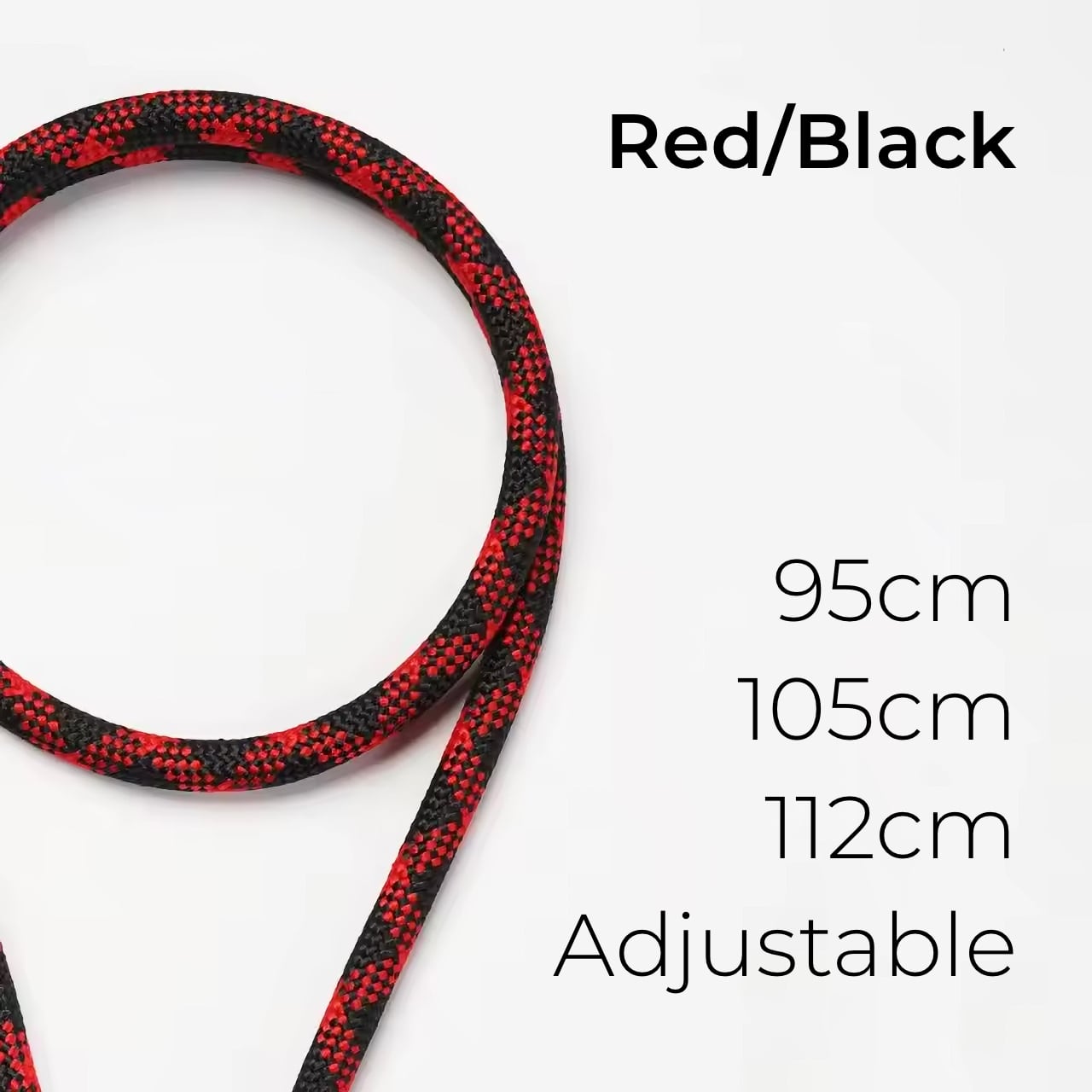 プロ仕様の登山ロープは、高い強度と安全性を備えていますが、その密度の高さゆえに硬く、ショルダーストラップとしての快適性には課題があります。