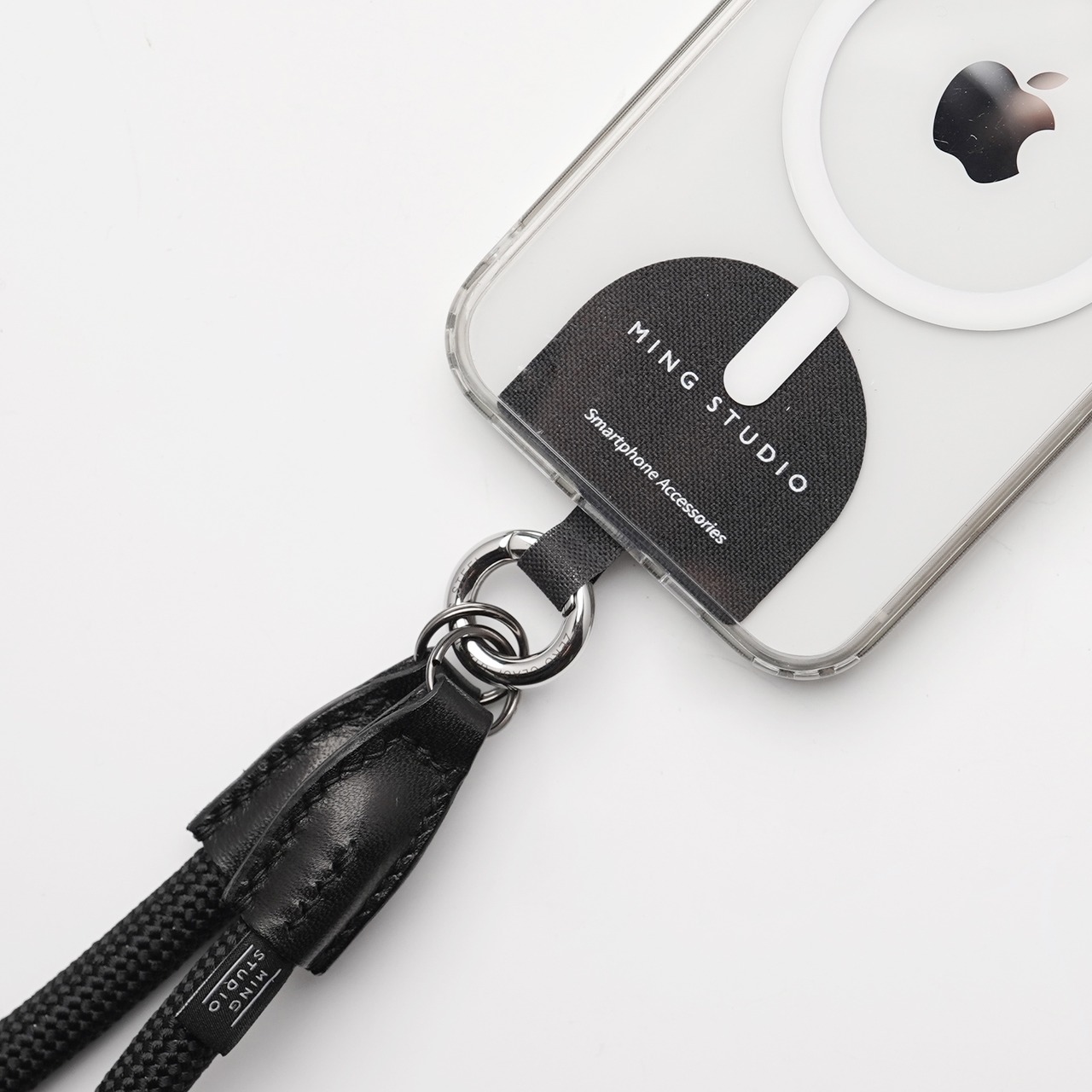 スマホケースに貼り付けてストラップを取り付けるためのパーツです。