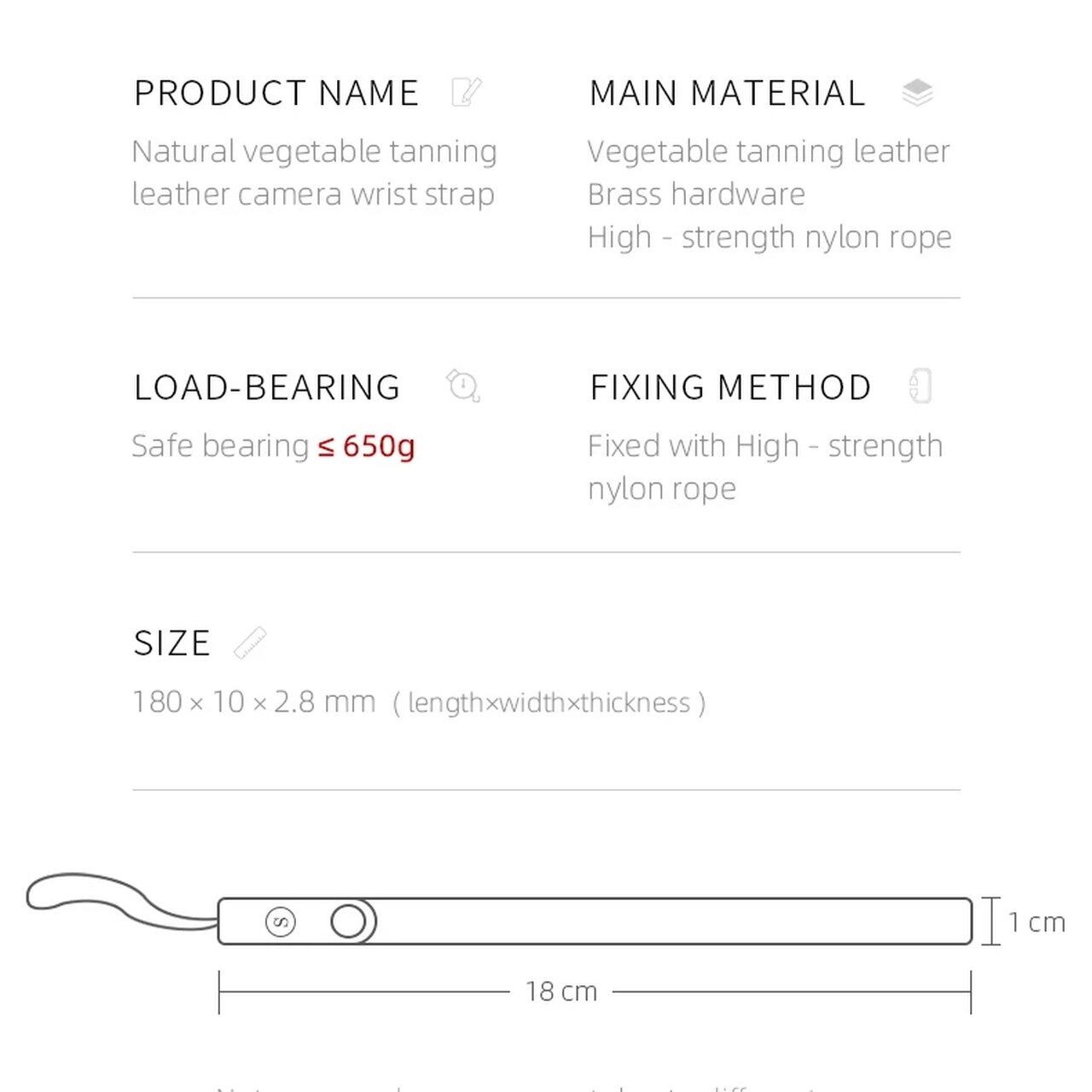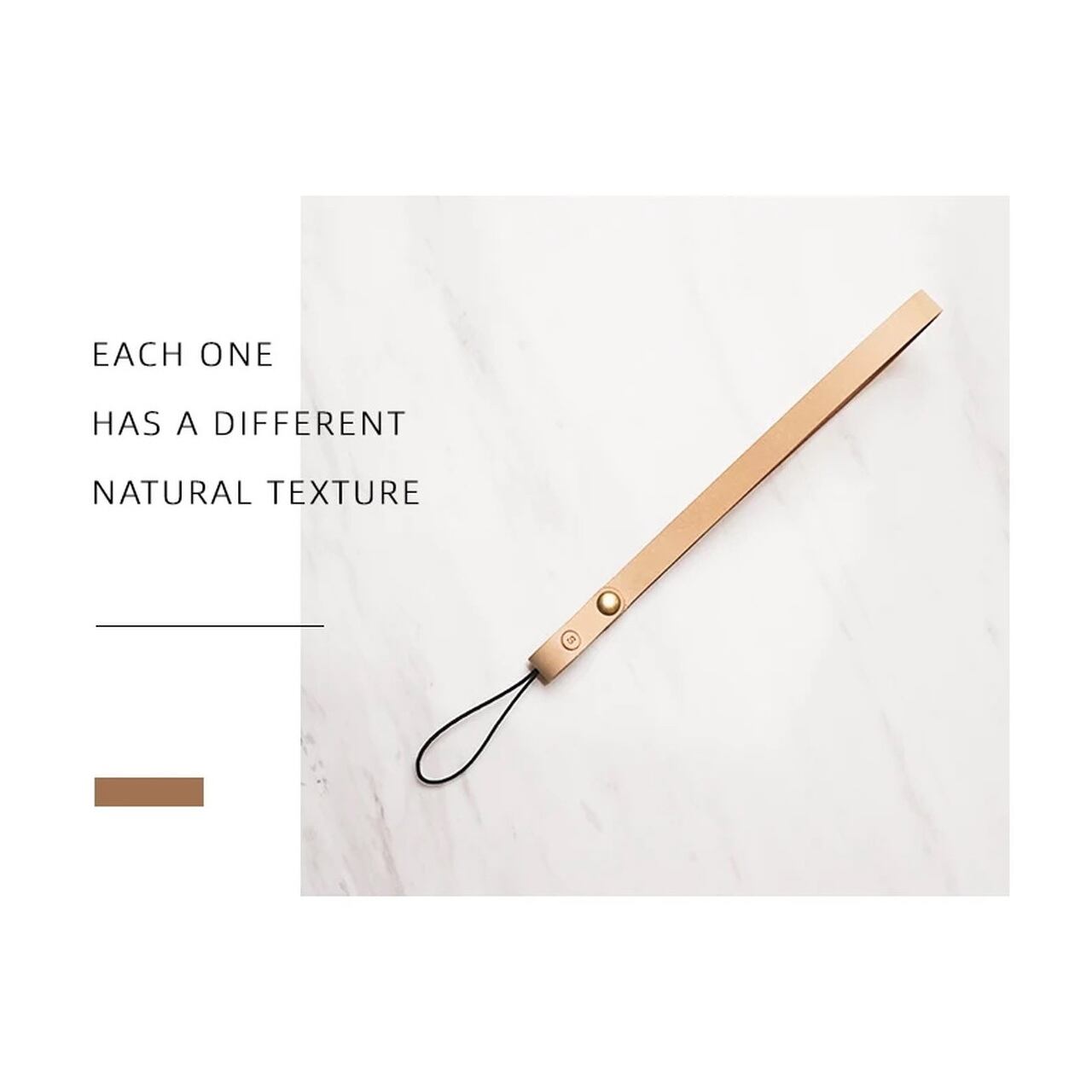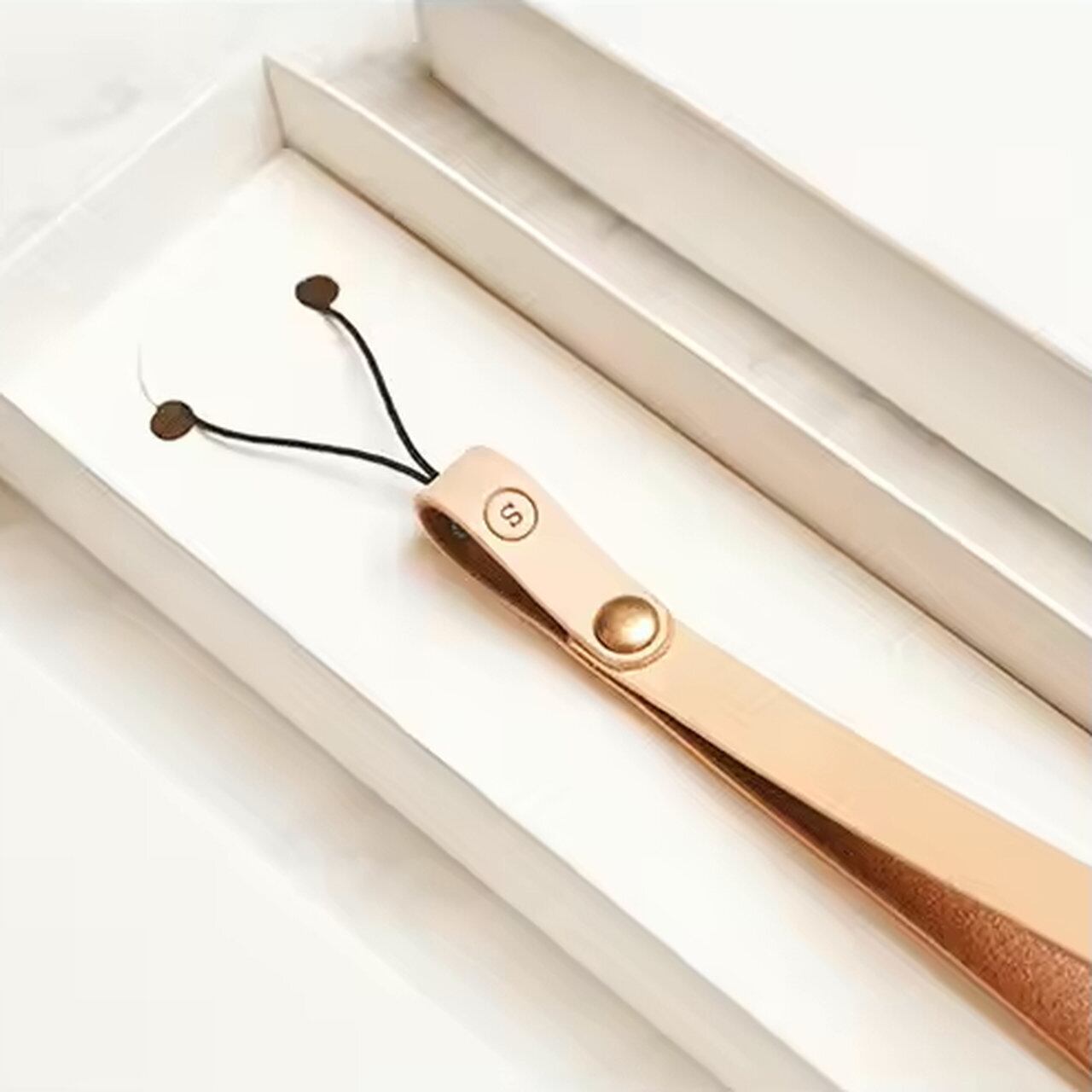 植物由来のタンニンなめしで加工された、ベジタブルタンニングレザーを使用したリストストラップです。