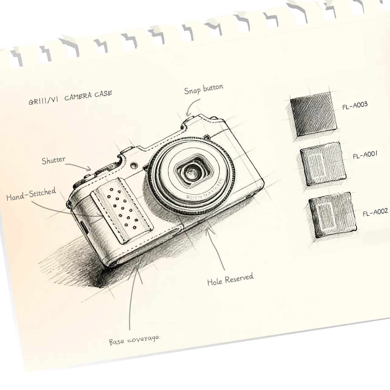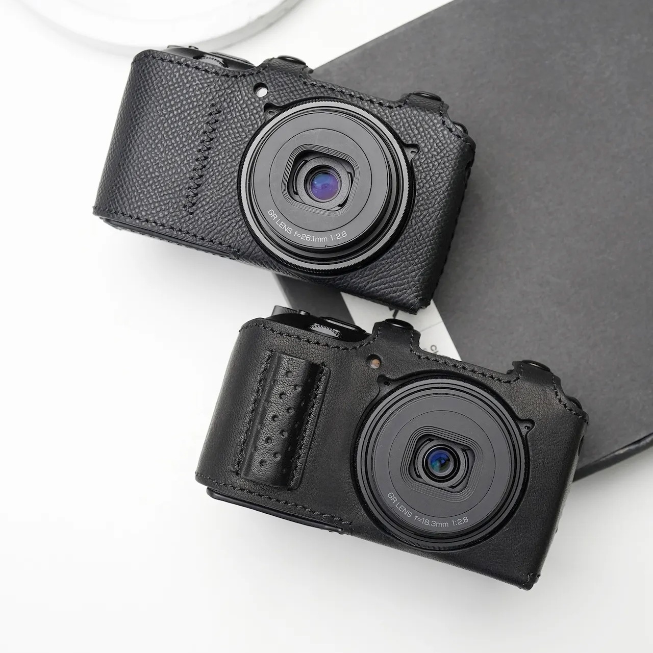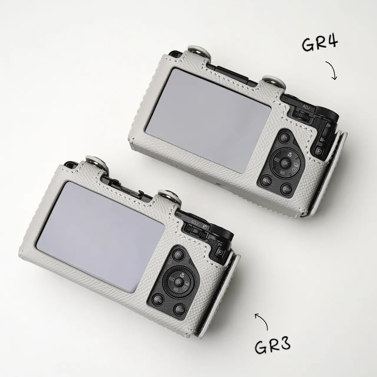 ⬛︎ 掲載写真について:GR III 用と GR IV 用の違いは、背面ダイヤルの窓と厚みのみです。その他の部分においては同じ仕様ですので、掲載写真はGR III・GR IVが混在しております。GR III 用は IIIxにもご利用いただけます。