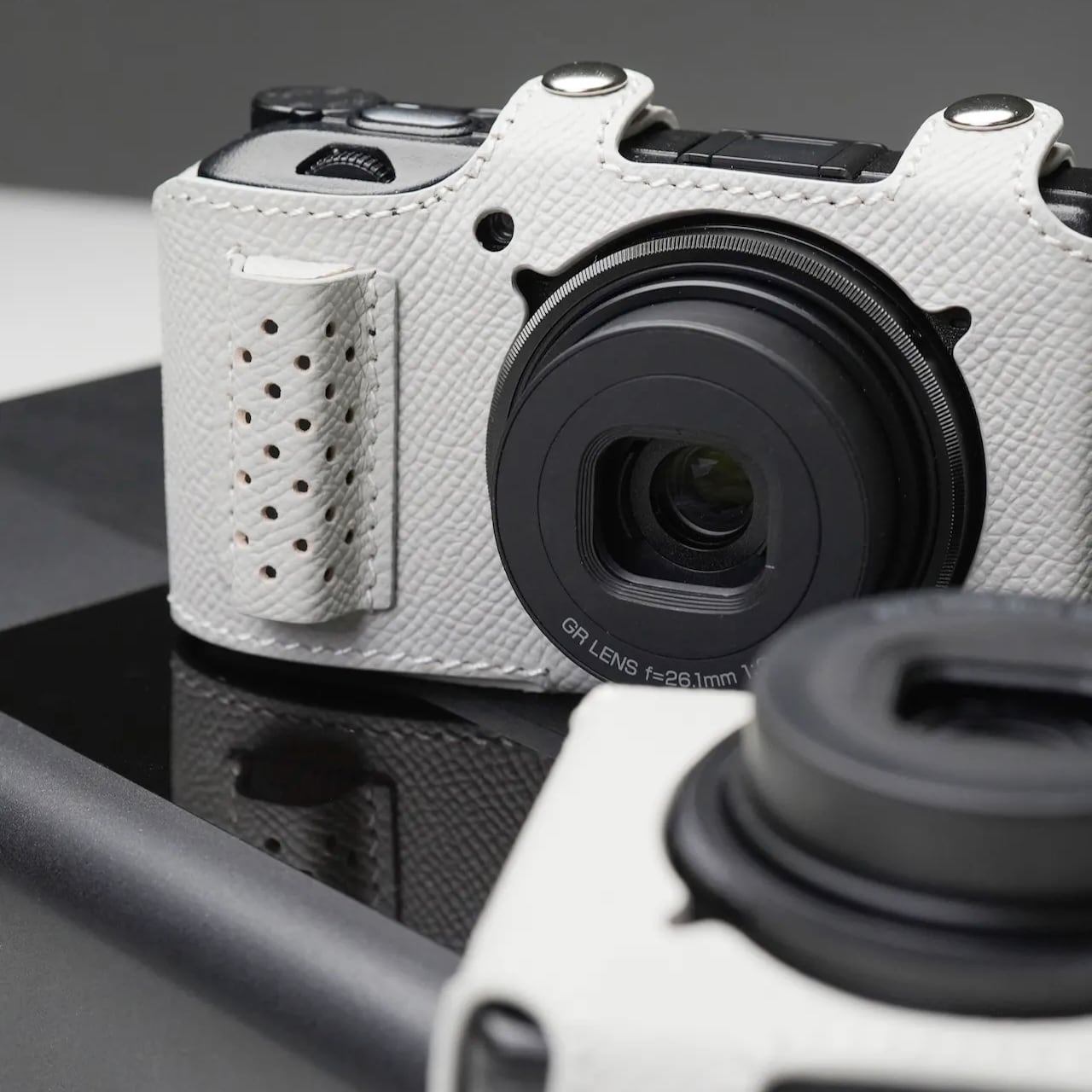 ⬛︎ 掲載写真について:GR III 用と GR IV 用の違いは、背面ダイヤルの窓と厚みのみです。その他の部分においては同じ仕様ですので、掲載写真はGR III・GR IVが混在しております。GR III 用は IIIxにもご利用いただけます。
